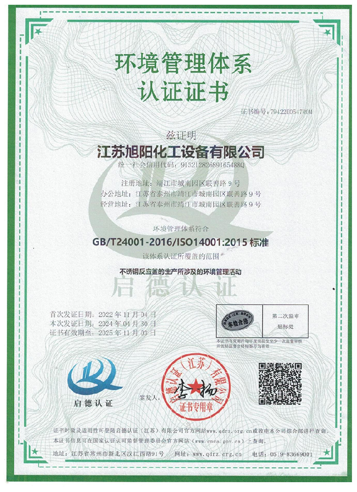 Jiangsu Xuyang Chemical Equipment Co., Ltd. is a high-tech enterprise integrating research and development, production and import and export trade, specializing in the design and manufacture of various chemical, environmental protection, pharmaceutical, fermentation, food, new materials, lithium and other projects and the manufacture of pressure vessels.